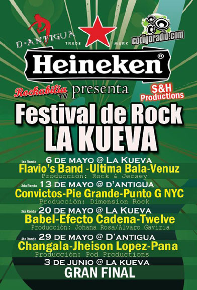 La gran final será en LA KUEVA en donde tocarán las bandas con mayor aceptación durante el Festival, cuyo patrocinador es la cerveza Heineken, con la etiqueta de color verde.