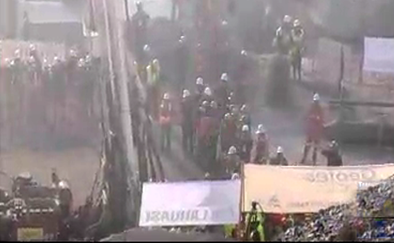 Sirenas, bocinas y campanas se escucharon en las afueras de la mina y luego se extendieron a todo Chile en señal de que la perforadora había llegado hasta el espacio a 622 metros de profundidad donde se encuentran los mineros.