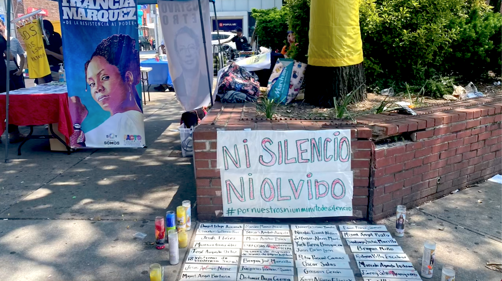 “Estoy aquí defendiendo la vida y la paz en Colombia, por tener una vida sabrosa y digna, donde los colombianos puedan expresarse libremente y para defender los derechos de todos los colombianos”, dijo Kathy Rojas, miembro del Centro de Justicia.