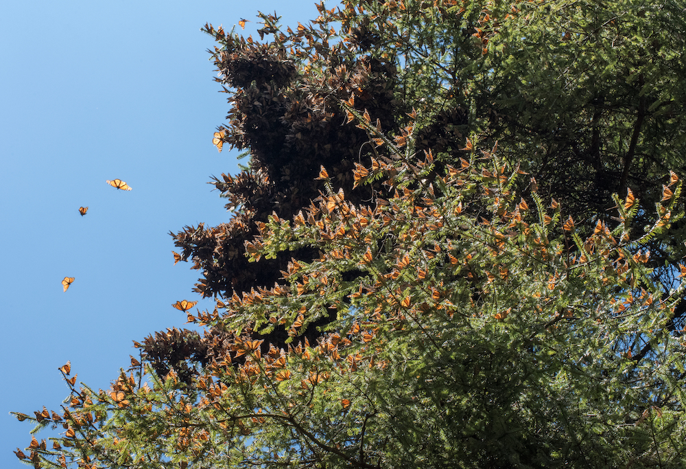 En el centro de preservación El Rosario las mariposas Monarca pasan de hoja en hoja. Foto Clay Bolt