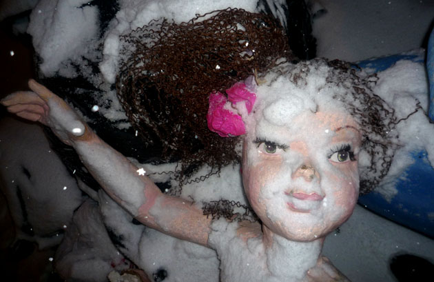 Esta escena se vivió en Queens a las 11 de la noche del martes, al comienzo de la nevada. Esta muñeca fue abandonada por su dueño en un andén cualquiera. Tenía ropa y labios rojos. Hasta que alguien abusó de ella, le quitó su traje rosado, la despeinó y la desmembró. Luego la nieve cubrió su cuerpo frío y desgarrado. Ojalá que el destino de los habitantes de la ciudad de Nueva York no sea el mismo de esta muñeca y esta vez retiren la nieve y recojan la basura de manera rápida y efectiva.