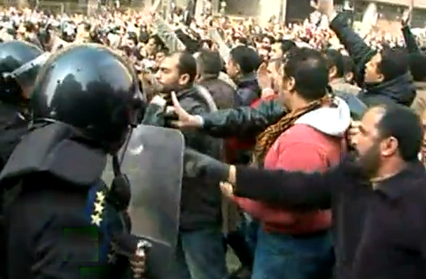 La policía detuvo a 500 manifestantes en El Cairo y en otras ciudades de Egipto tras el segundo día de enfrentamientos y movilizaciones callejeras para exigir la dimisión del presidente Hosni Mubarak, quien gobierna desde hace tres décadas.