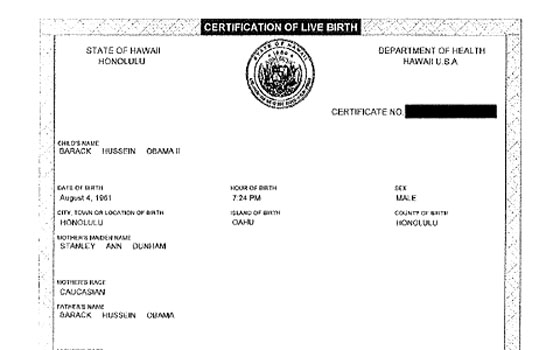 En la primeras horas de la mañana, la presidencia de Estados Unidos difundió por primera vez la versión completa del certificado de nacimiento del presidente de Estados Unidos, que muestra que nació en Honolulu, Hawai.