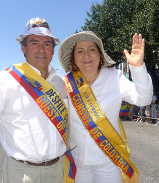 “Me enorgullece estar aquí con mis compatriotas celebrando nuestra cultura y costumbres”, dijo el animador de televisión jorge Barón, el mariscal de este desfile y quien hizo el recorrido estrechando la mano de los colombianos que desde el andén agitaban la bandera tricolor amarillo, azul y roja. “Entusiasmo es lo que necesitamos para llevar la paz a Colombia. Que viva Colombia”. Barón vestía un vestido blanco impecable.