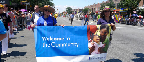 Yolanda Jiménez, Comisionada de Violencia Doméstica en la Ciudad de Nueva York, desfiló ondeando la bandera de Colombia al lado de Luz Quintero, presentante de Mega Home, que vende casas y apartamentos en Colombia.
