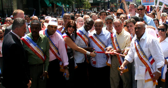 Al lado de Rangel estaba el congresista José Serrano de El Bronx, el asambleísta Adriano Espaillat que quiere ser senador estatal, el asambleísta Nelson Denis, el presidente del condado de El Bronx, Rubén Díaz Jr., el contralor de la ciudad John Liu, el defensor del pueblo Bill de Blasio, y la sonadora federal por el estado de Nueva York, Kirsten Gillibrand, quien repartía besos a los dominicanos a diestra y siniestra.