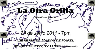 El colectivo Poetas en Nueva York, invita a los escritores y comunidad en general a la serie de lecturas bimensuales ‘La Otra Orilla’, a realizarse en las instalaciones de la librería El Barco de Papel ubicada en 40-03 Calle 80, NY 11373.