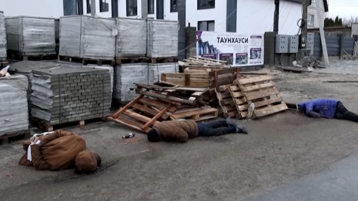 En las calles de Ucrania, hombres muertos con las manos atadas a la espalda.