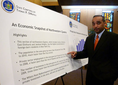 El senador Peralta fue el que solicitó la elaboración de un informe o radiografía sobre el noroeste de Queens. El contralor del estado de Nueva York, Thomas DiNapoli, se encargó de elaborarlo y esta semana realizaron una conferencia de prensa para anunciar los hallazgos: