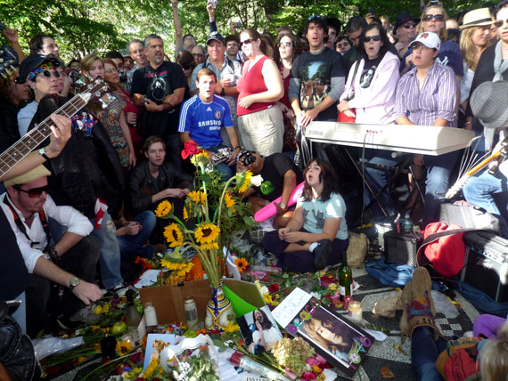 La gente que se congrega en Strawberry Fields del Parque Central para recordar a John Lennon, el ex Beatles. Foto Javier Castaño