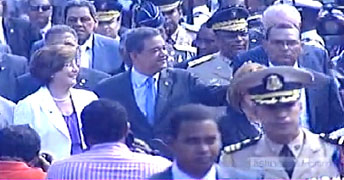 Fernández fue recibido con los honores militares de estilo rendidos por un batallón mixto de las Fuerzas Armadas, en presencia del jefe de esa institución, teniente general Joaquín Virgilio Pérez Feliz.