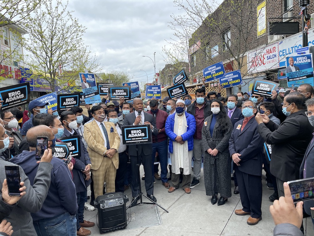 Este domingo el candidato Eric Adams acudió a Diversity Plaza a recibir el apoyo de Rise Up, organización de la comunidad de Bangladés en la ciudad de Nueva York.