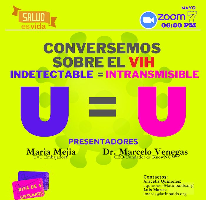 Salud es Vida continúa con su serie de foros comunitarios mensuales para hispanohablantes con información relacionada con el movimiento U=U (Indetectable equivale a Intransmisible).