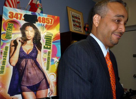 La prostitución abunda en la avenida Roosevelt de Queens y este senador demócrata quiere acabar con el negocio. Este año ha presentado dos proyectos de ley. El primero en contra de la distribución de las tarjetas de negocio con fotos de mujeres semi-desnudas y números telefónicos para contratar a las chicas. El segundo es para penalizar a los taxistas.