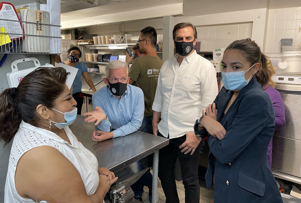 “Vamos a ayudarle a todos a acceder a los fondos del gobierno y en especial a los pequeños negocios que todavía están peleando los efectos de esta pandemia y ahora las inundaciones”, dijo la congresista AOC.