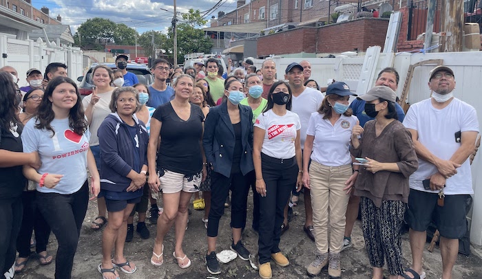 La senadora Ramos acompañó a la gobernadora Kathy Hochul y a la congresista Alexandria Ocasio-Cortez (AOC) cuando visitaron esa zona de Queens. Hablaron con los residentes del área y les dijeron que documentaran todos los daños y los gastos con el fin de solicitar ayuda del gobierno y notificar a las empresas de seguros.