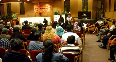Over sixty immigrant community members living in the 39th Assembly district gathered at the Jewish Center of Jackson Heights to develop a pro-immigrant, pro-worker platform for New York State. The event was organized by eight local eight local community based organizations including: Adhikaar, Alianza Ecuatoriana , Chhaya CDC, Desis Rising Up and Moving (DRUM) , New Immigrant Community Empowerment (NICE), New York Civic Participation Project (NYCPP), The New York Immigration Coalition (NYIC), Queens Community House, Queens Pride House, and South Asian Youth Action (SAYA!)
