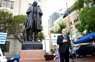 Fue la celebración número 186 de la Independencia de Uruguay y en Nueva York se realizó frente a la estatua del prócer y general José Artigas, ubicada en la Sexta avenida y la calle Spring, en Soho.