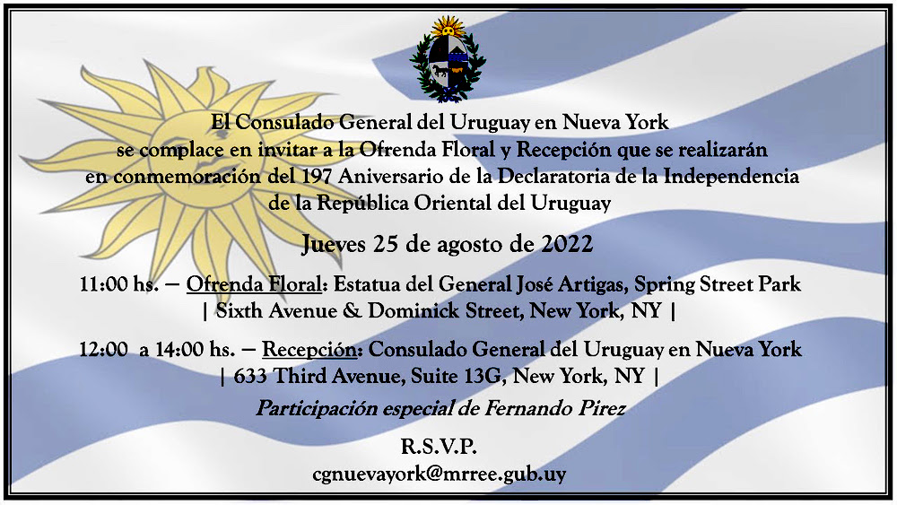 Con varios actos culturales y sociales la comunidad uruguaya de la ciudad de Nueva York celebra este jueves 25 de agosto su Independencia, incluyendo la izada de bandera en Manhattan y fiesta Tabaré en Brooklyn.