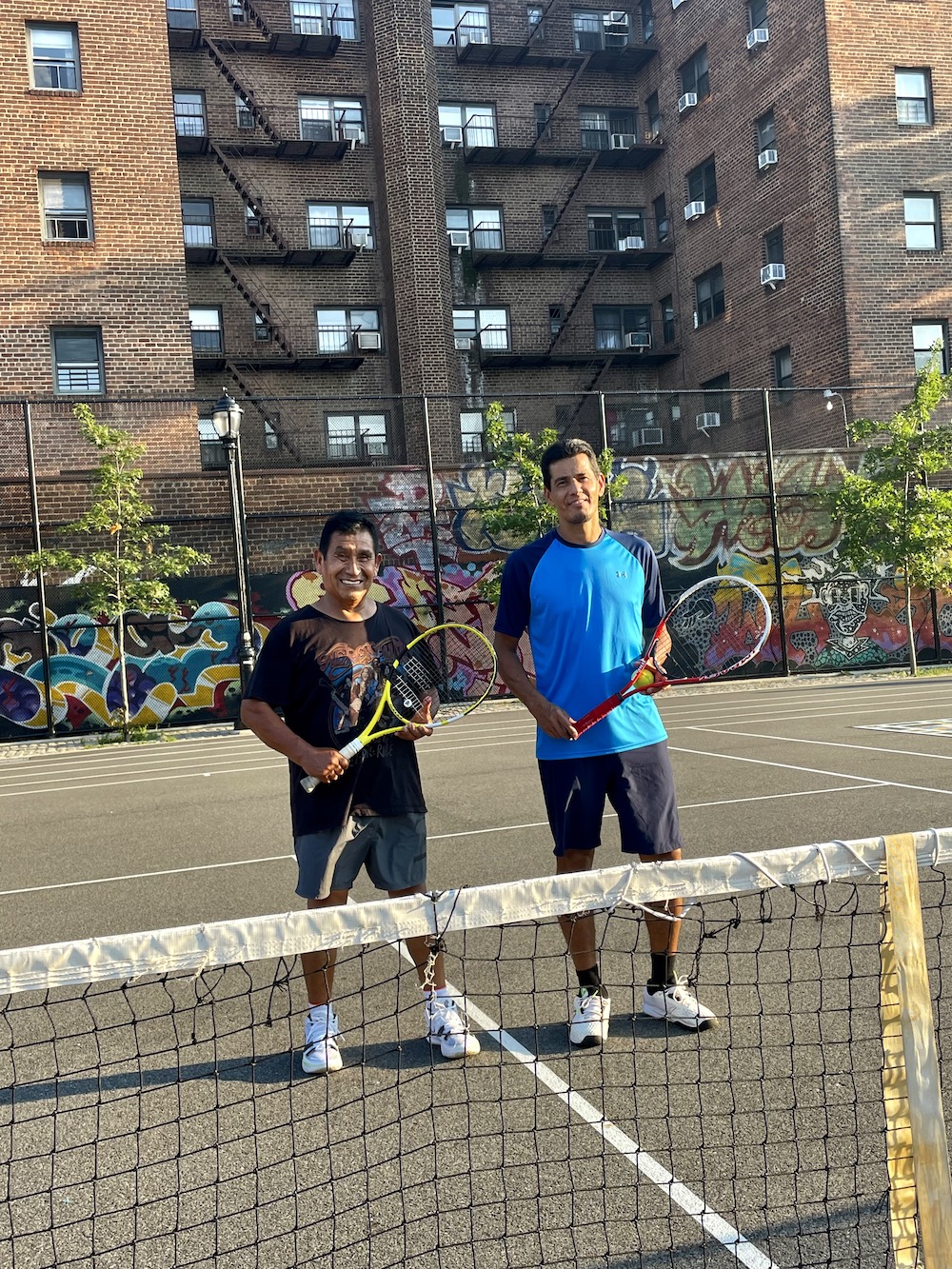 Fanáticos del tenis, Luis Valverde y Enrique Santander juegan en Travers Park de Jackson Heights.