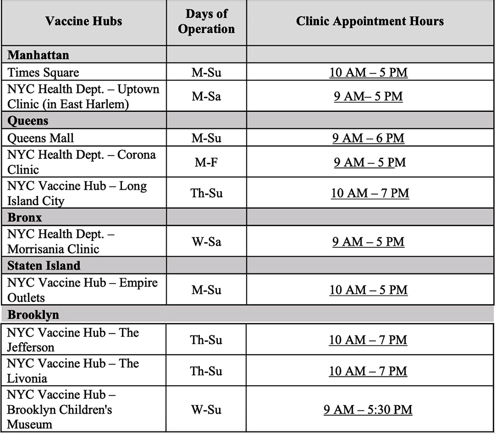 La vacuna para bebés se administrará en los cinco condados y la ciudad dispone de 10 centros para recibir a las familias y los menores de edad. El 21 de junio también estará disponible esta aplicación para que los padres hallen los centros de vacuna más convenientes: New York City’s COVID-19 Vaccine Finder