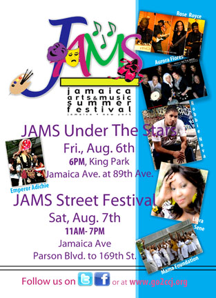 Este evento de música tradiciónes culturales es en el King Park, en la calle 150 de Queens. Comenzó en 1996 y siempre se ha realizado en el mes de agosto. Se denomina JAMS y las autoridades de la ciudad de Nueva york cierran las calles aledañas para permitir el ingreso de la gente. Además de la música de varios grupos étnicos, habrá comida, artesanías y otras expresiones culturales para atraer a las familias de diversas procedencias.